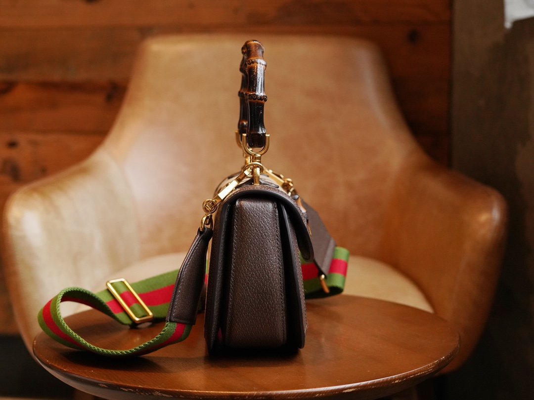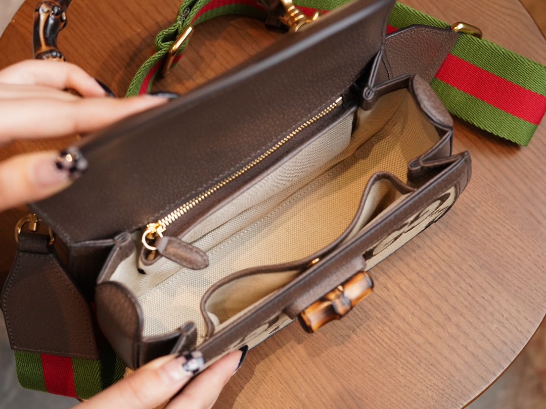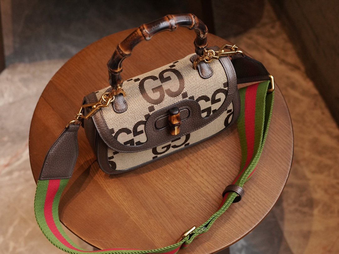 Bamboo Handbag Small Canvas nnThe brand’s symbols are reinterpreted in different ways every season. The “Aria” collection features a new design with double G’s in a bold and eye-catching style. This small handbag is designed with bamboo handles, giving a modern twist to the classic material. nSize: 21*15*7cmn🔍: 6757970511