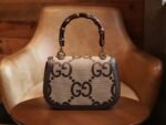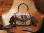 The brand’s symbols are reinterpreted in different ways every season. The “Aria” collection features a new design with double G’s in a bold and eye-catching style. This small handbag is designed with bamboo handles, giving a modern twist to the classic material.