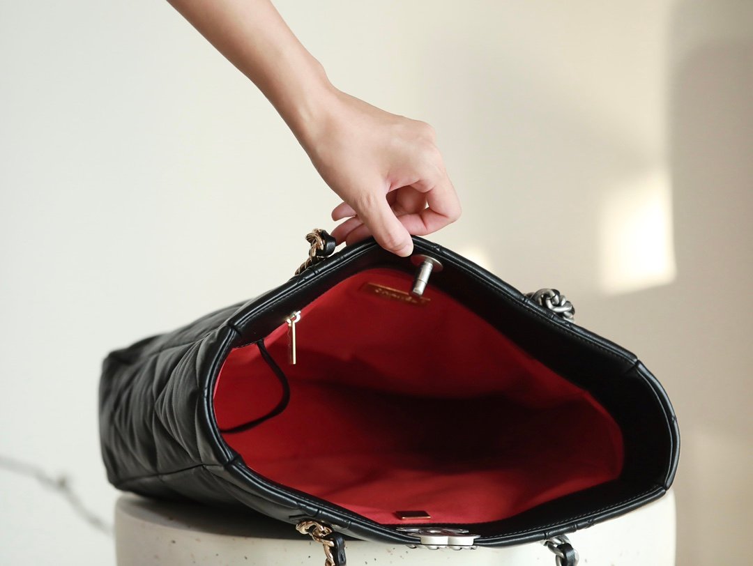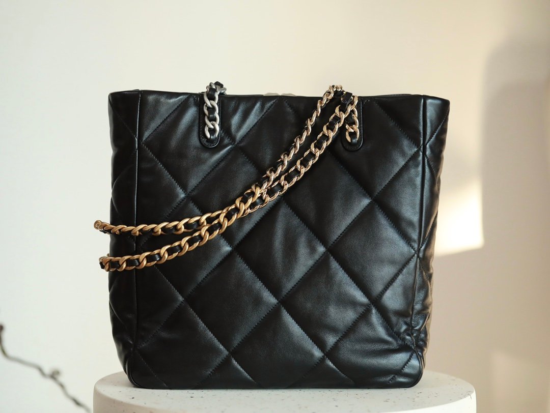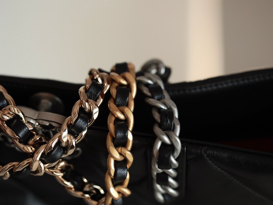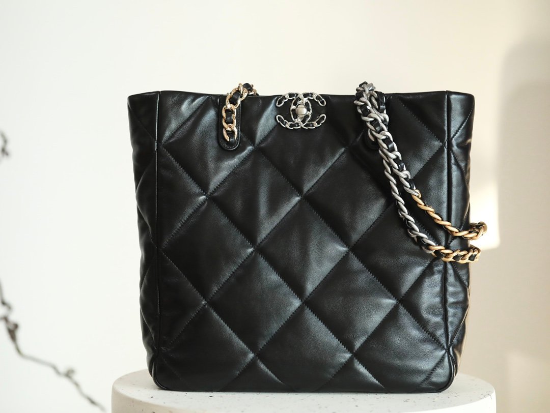 Home BAGS CHANEL Chanel 2022B 19 shopping bag spottingnn22B the hottest is the 19 shopping bag is none other than it nn distinctive design big chain fashion splicing sense nn plus original lambskin bring the texture nn invincible must enter nn Hardware: antique silver, antique gold, ruthenium color n Leather: the open material department 𝚉 𝙿 Mixed Lambskinn Size: 𝟹𝟶*𝟹𝟽*𝟷𝟶 𝚌𝚖