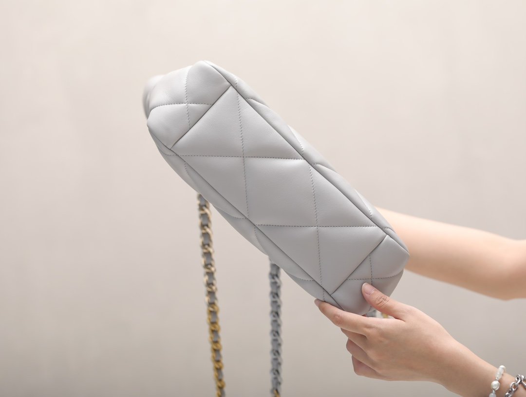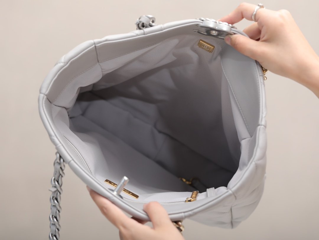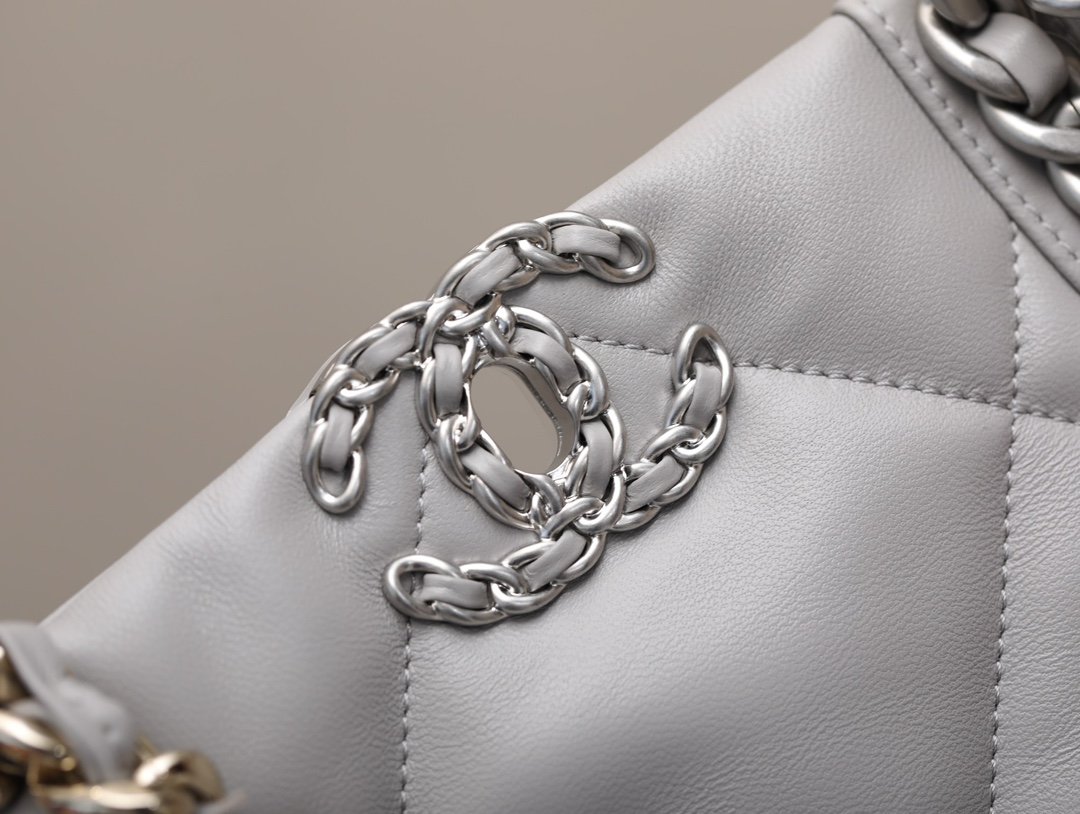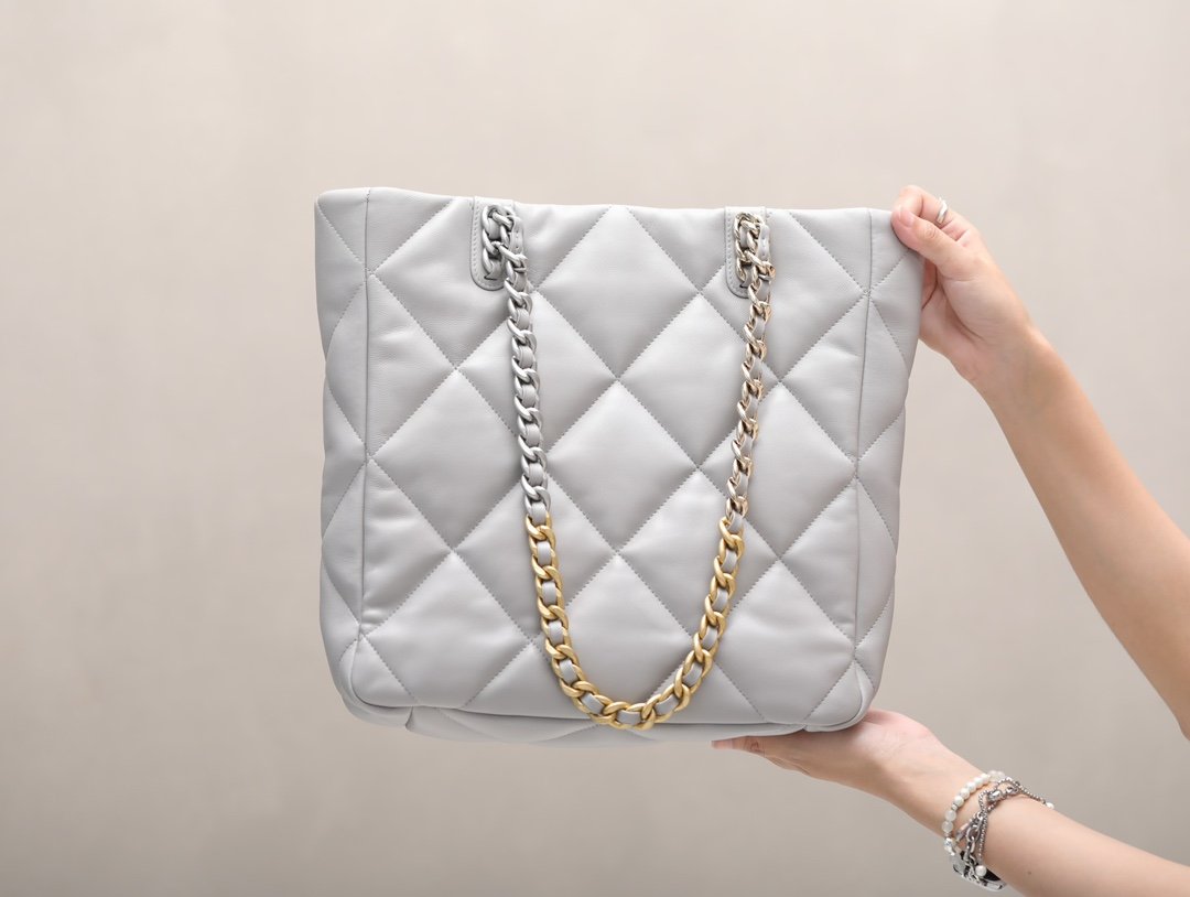Chanel 2022B 19 shopping bag spottingnn22B the hottest is the 19 shopping bag is none other than it nn distinctive design big chain fashion splicing sense nn plus original lambskin bring the texture nn invincible must enter nn Hardware: antique silver, antique gold, ruthenium color n Leather: the open material department 𝚉 𝙿 Mixed Lambskinn Size: 𝟹𝟶*𝟹𝟽*𝟷𝟶 𝚌𝚖
