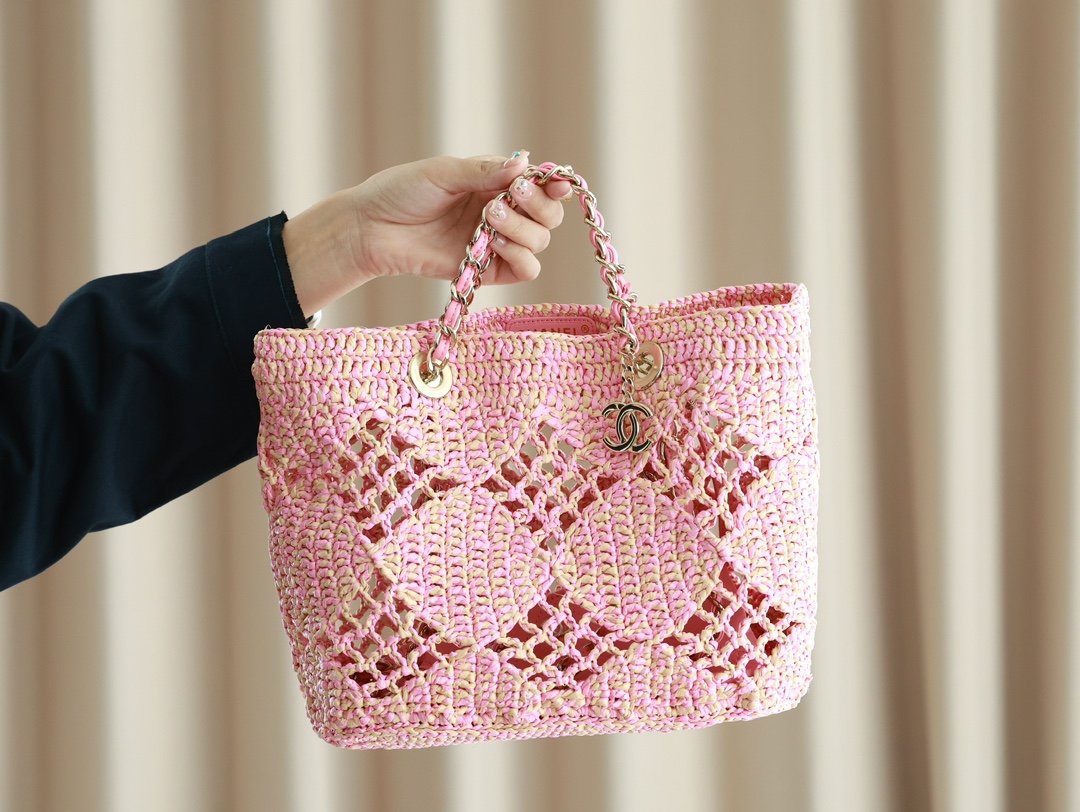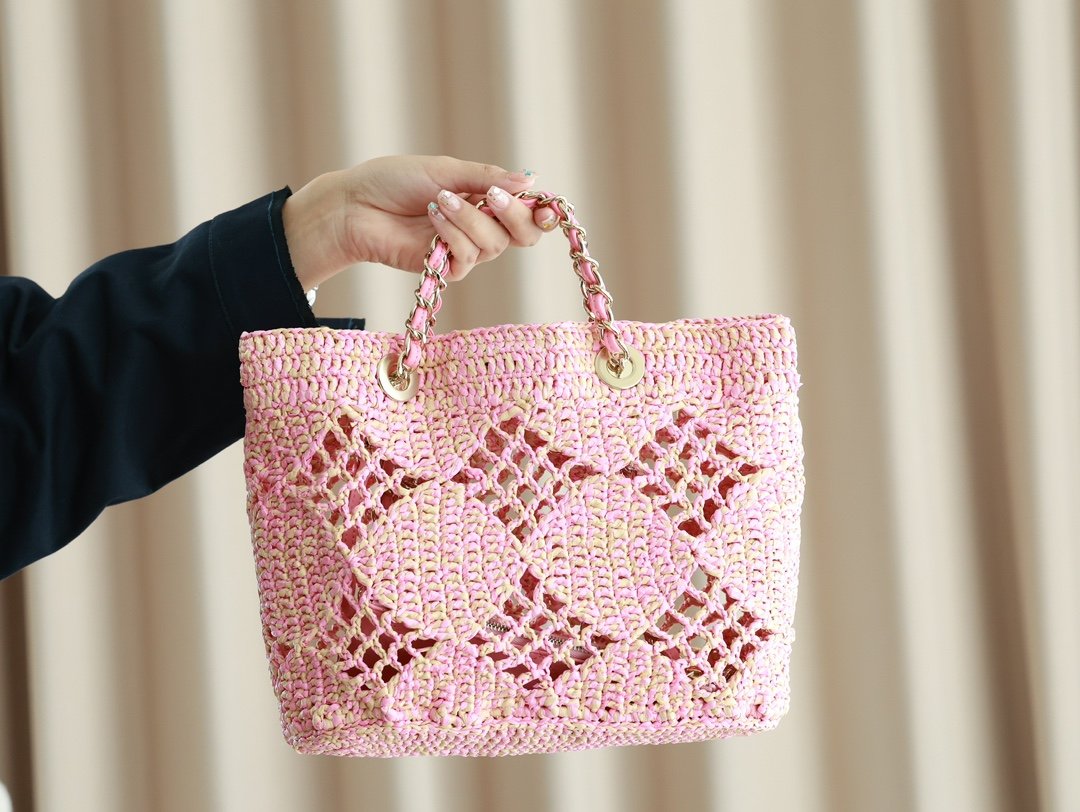 Home BAGS CHANEL chanel 2024 straw shopping bag n too fragrant this pink n fulfills the dream of how many girls n travel in the town fields Sunset n sunset light and shadow backdrop how can be missing this bag it n size: 24.5 * 32 * 10cm