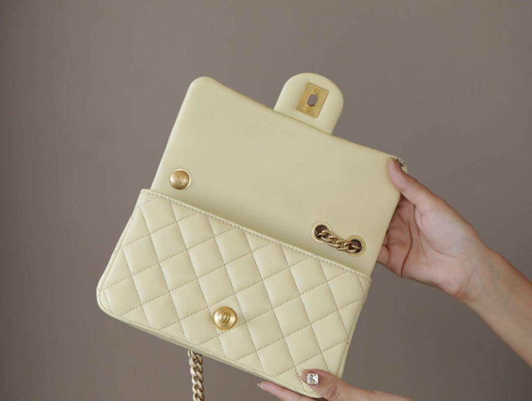 chanel cluth with chain minin chanel chain clutch bag 23k new online 💕n the continuation of the ancient design. Add an additional cute chain n too cute really is also too mini n but does not affect the whole bag strong sense of texture n23k product is currently this year’s most explosive product it nSize:8.3cm * 12.5 * 4cm