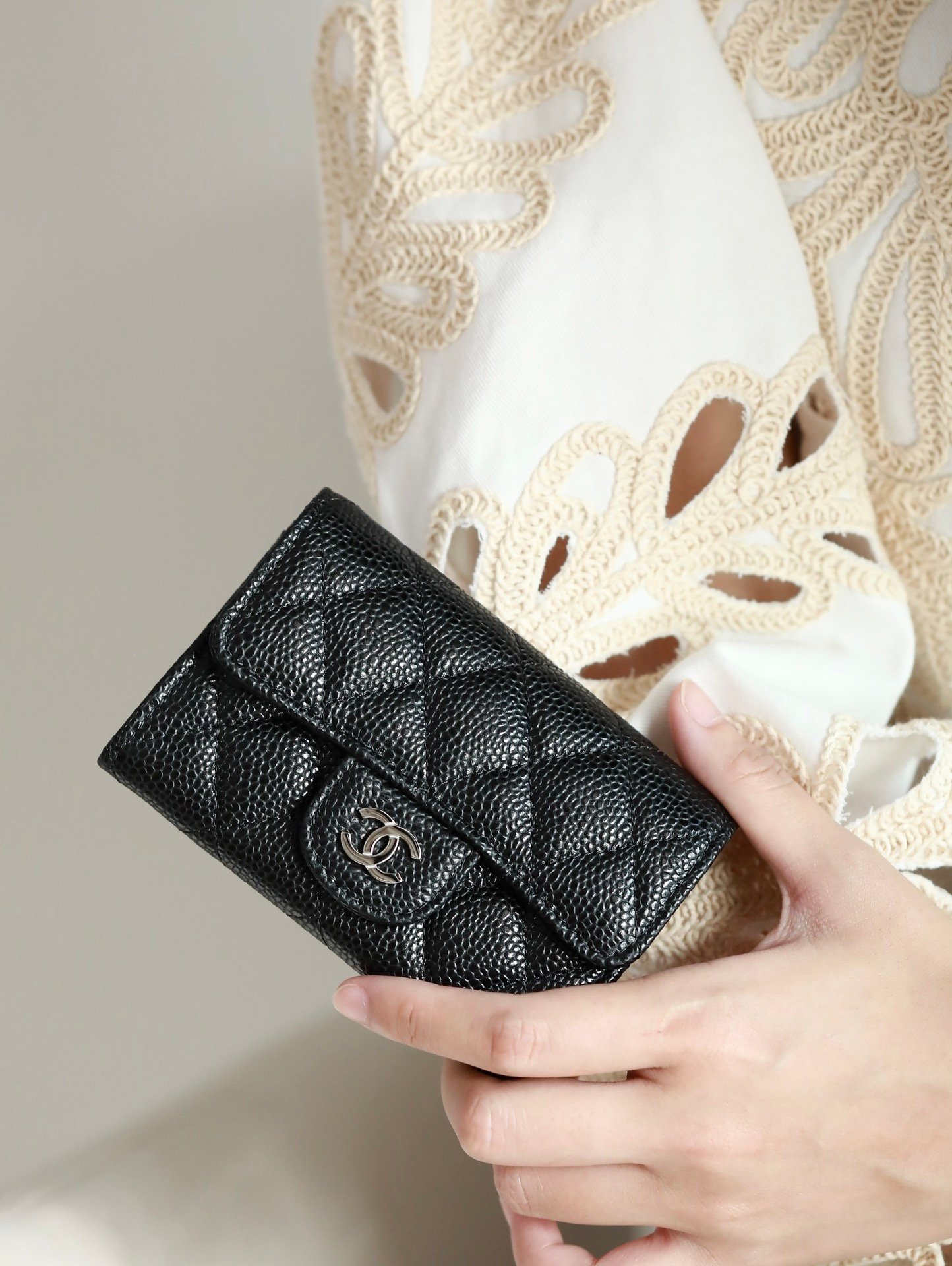 chanel Classic Flap Card Case n The flap of the card case really has too much capacity n It can be used as a card case as well as a business card holder n A card case with multiple uses n Classic hass Caviar Excellent abrasion resistance n The original hass to go a wave of n Different from the previous version n The new version comes with a two-tone color effect n Dimensions:7.5x11.3x2.1cm