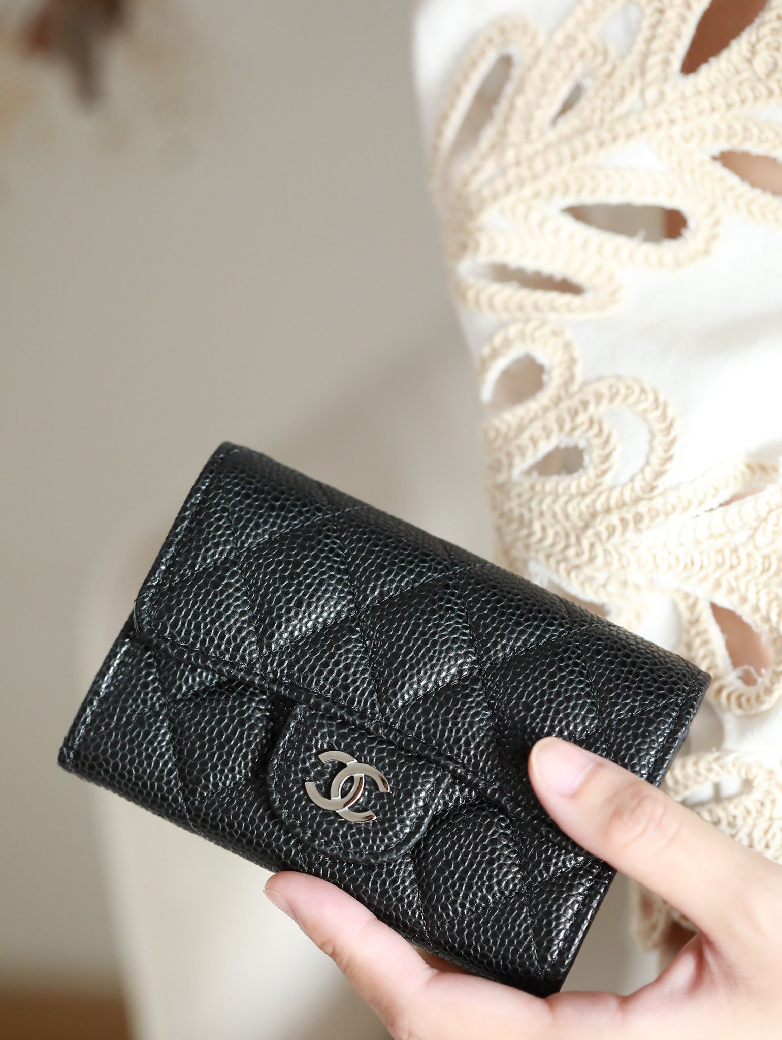 chanel small fragrant classic paragraph card bag coin purse! n using caviar hass France original leather n wear resistance list first n really too practical small card case we still want to essential n do not have to worry about the card can not find it nn leather: haas original leather n hardware: channel fine engraved thick gold