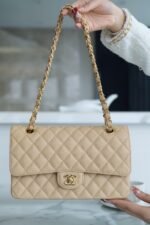 “Classic Flap” classic mouth cover bag Medium apricot color