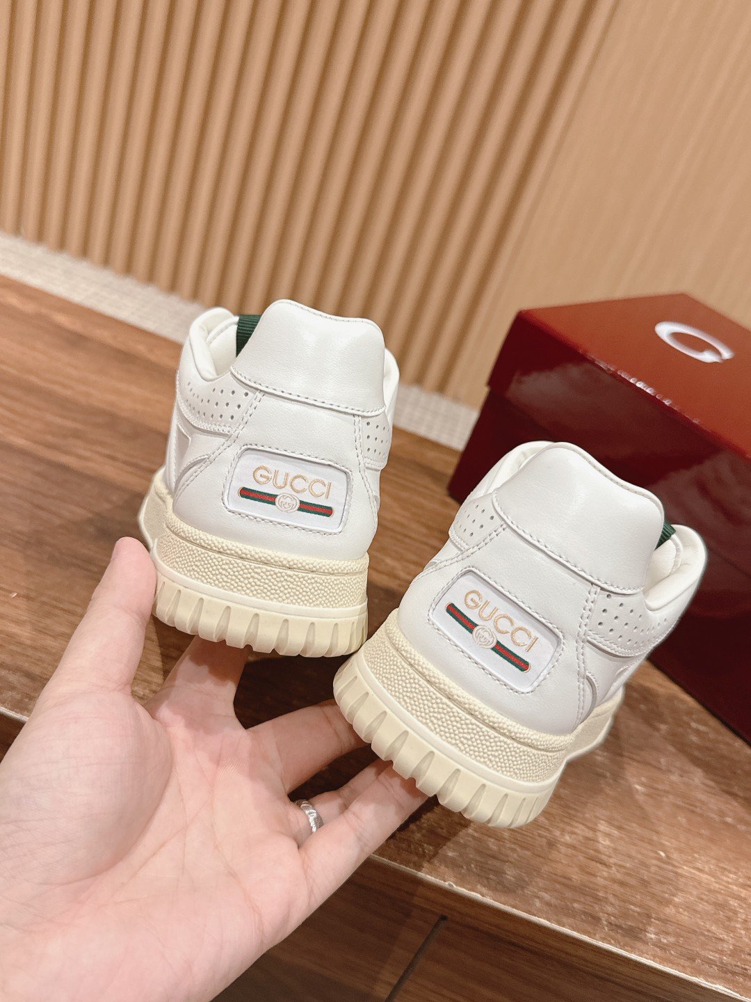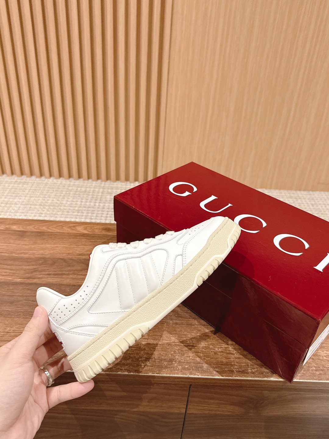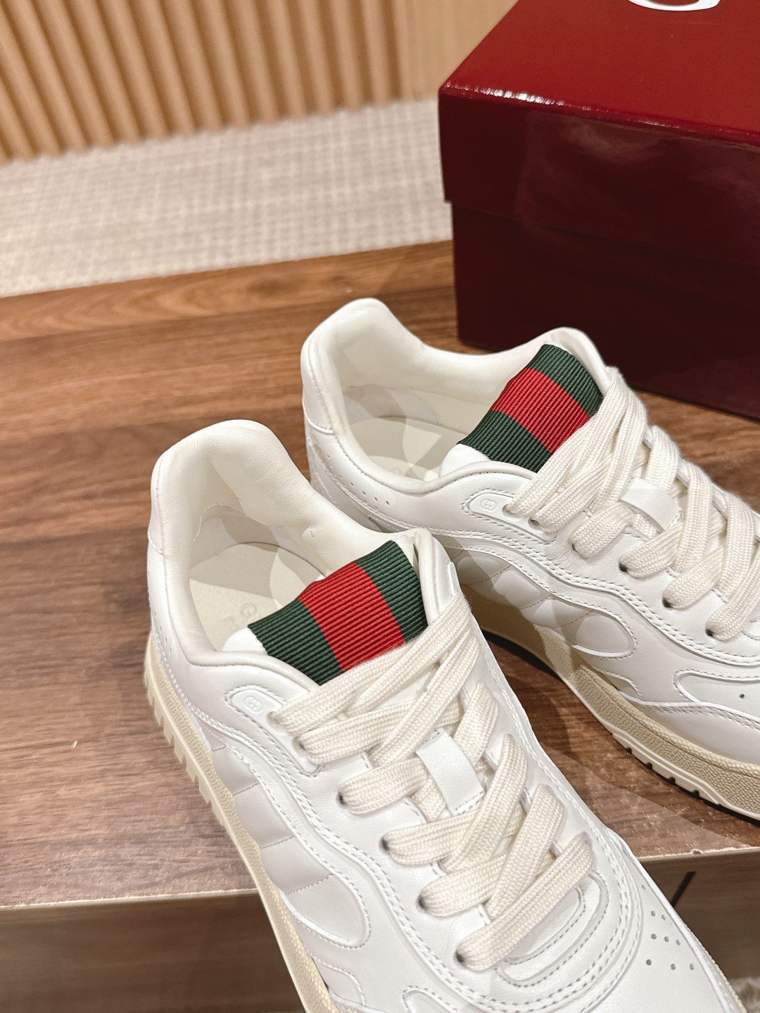 Home shoe GUCCI #Couple Size [Pure White] 𝐆𝐮𝐜𝐜𝐢 𝐑𝐞-𝐖𝐞 𝐛 As Sabato De Sarno’s first sneaker for Gucci, the Re-Web collection reinterprets the brand’s classic stripes with bold, irreverent detailing against a modern silhouette crafted in white leather, the new sneakers are embellished with a number of the brand’s iconic details and a bright red and green lace-up tongue, making them an instant favorite. The white leather is specially treated to be soft and supple with an embossed grained texturenn handwritten Gucci logo and interlocking double G webbing labeln with interlocking double G and handwritten Gucci logoRubber outsolen with interlocking double G detailingEyeletsn with webbing tongueSize: Women 35-40M Men 39-44M