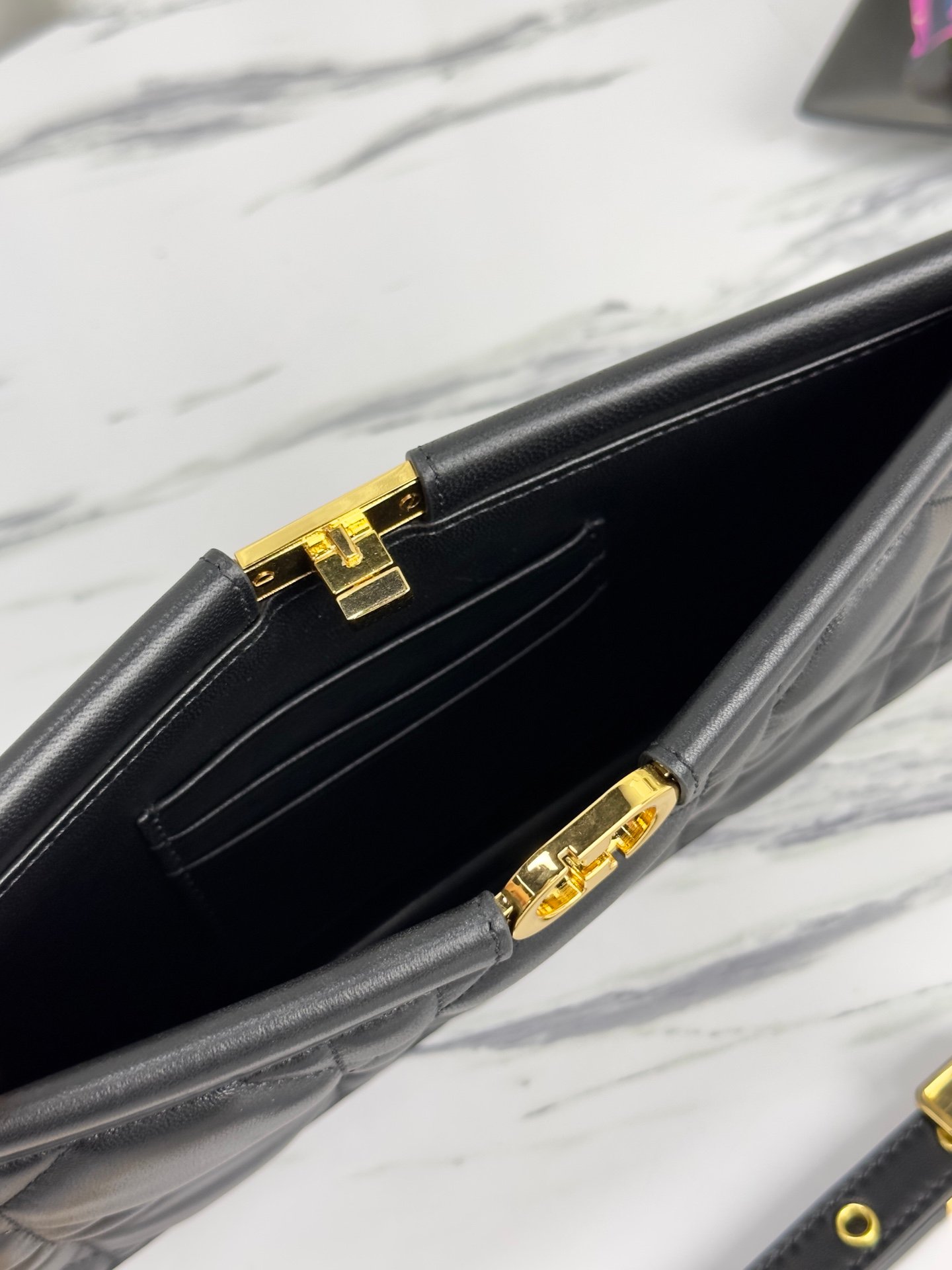Toffee 4 compartments Black gold buckle Detailed picture [In stock]; Flap design, deerskin lining Crossbody or shoulder strap Shoulder strap is not adjustable Size:20✖9✖17 Model:M0539