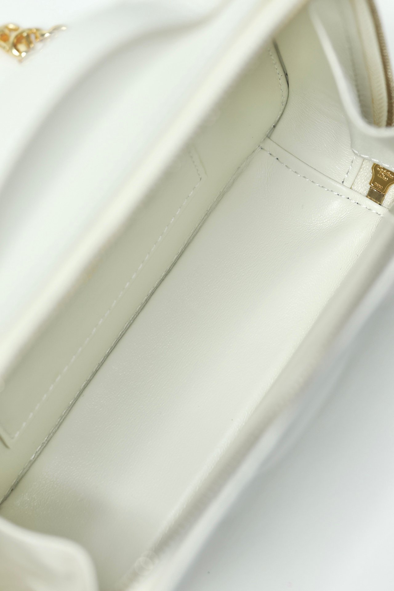 Toffee 4 compartments Sky blue enamel buckle Detailed picture [In stock]; Flap design, deerskin lining Crossbody or shoulder strap Shoulder strap is not adjustable Size:20✖9✖17 Model:M0539