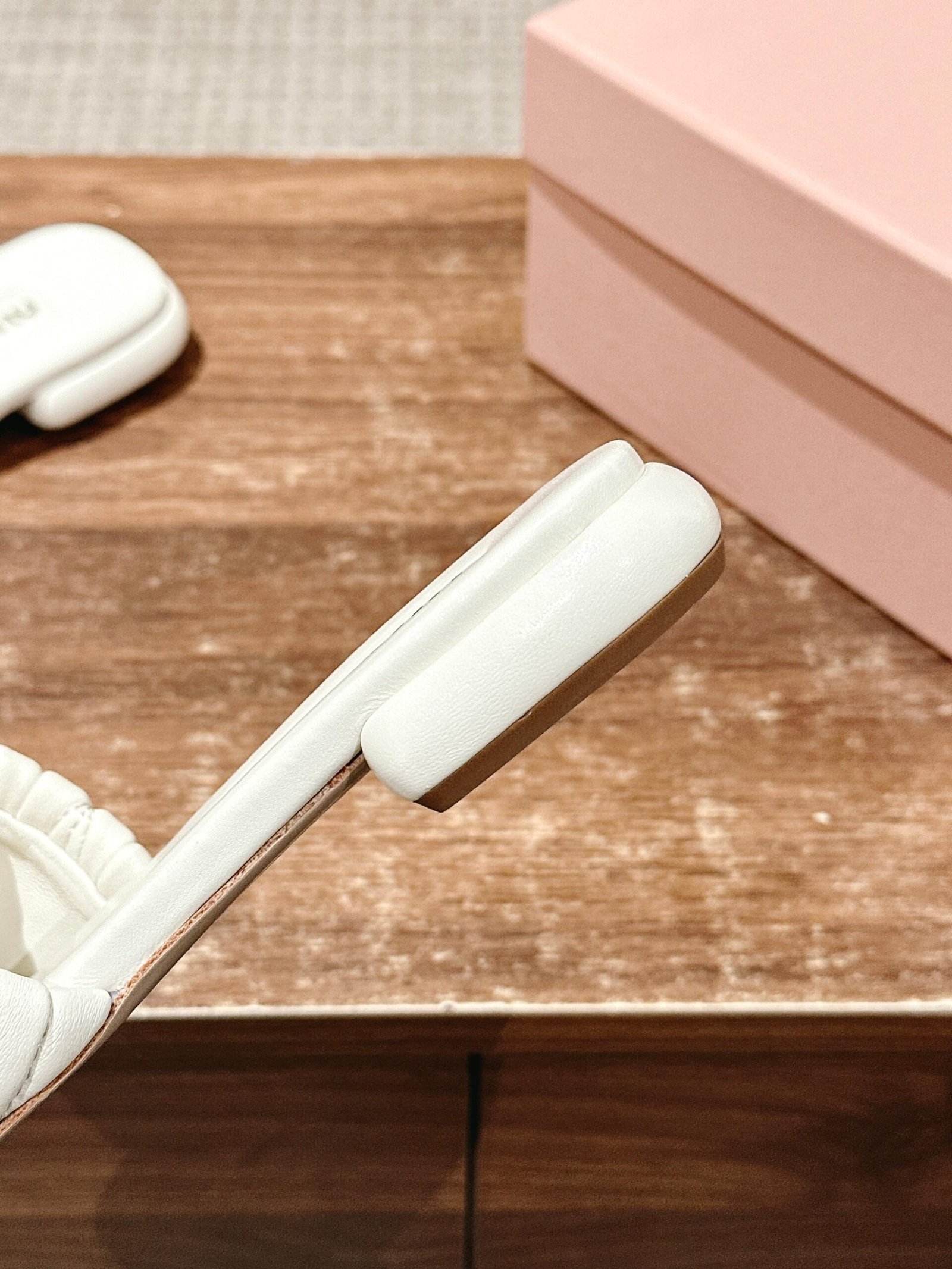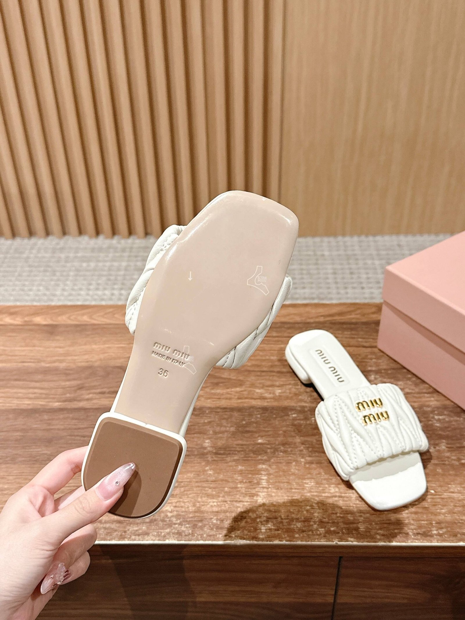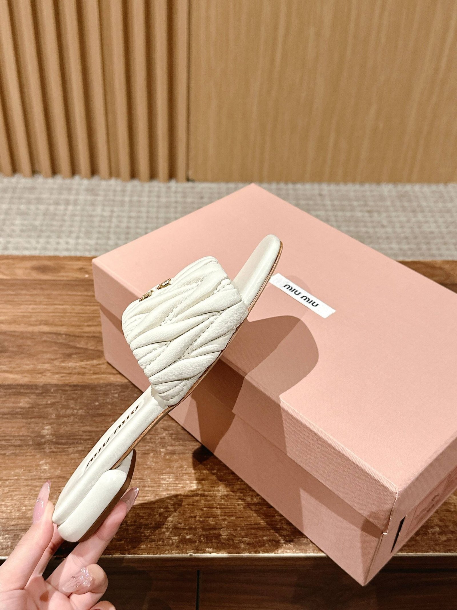 [Flat Heel] 𝐌𝐢𝐮 𝐌𝐢𝐮# Miu Miu New Pleated Cat Heel Drags n Let you walk can also be beautiful to the heart!!!! The design is very simple and atmospheric, without too much decoration and fancy design, but it comes with an elegant temperament, with a very strong ability to match, whether it is a skirt, pants or jeans, can easily match with different styles, so that you become a fashion icon!!!nnFull sheepskin made of soft and breathable leather sole nSize: 35-39 (40 customized non-returnable)