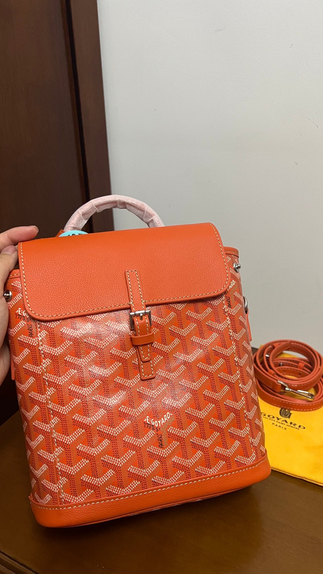 GOYARD Alpin new version of the side has been upgraded to button buckle style oh! Old Flower Full Print Removable Adjustable Shoulder Strap Canvas Spell Original Leather Schoolbag Backpack Shoulder Bag Mini Men’s and Women’s Couple’s Model