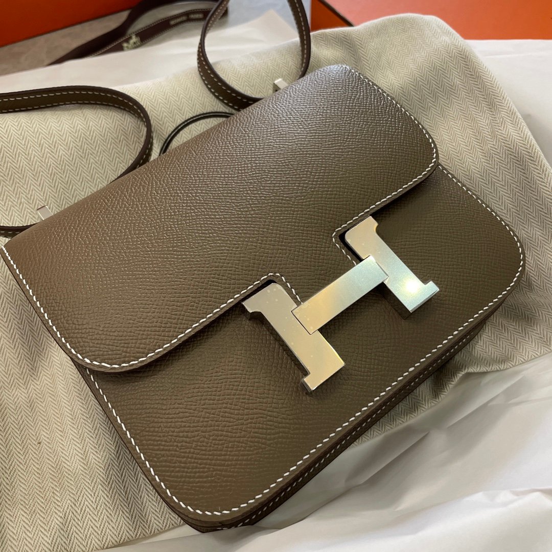 Hermes Shipping real ✈️ 230318n2023 latest version B engraved , with small mirrorn elephant gray Kang Kang stewardess bag 19cm n23 latest zp details n