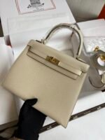 Hermes Shipping real shot ✈️✈️✈️n🐭🐭🐭 Hermes kelly 25 milkshake white classic models Pure handmade Imported palm grain epsom Leather is super soft and delicate Fine steel hardware Rarely get the rare things can be in and out of the counter Every detail is impeccable Inside and outside the whole skin Capacity can be low-profile luxury Style with dust bag Size: 25/24/10cm