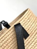 L⊚℮w℮🌟 Palm Leaf and Cow Leather Drawstring Bucket Bag The classic body of this bucket bag is hand-woven from palm leaves and features a cow leather shoulder strap and herringbone-print cotton canvas drawstring top.*Carry over the shoulder or crossbody*Adjustable shoulder strap*Can be customized with personalized charms and straps*Unlined Anagram embossed patch*Due to the handmade nature, the size and shape ce may vary slightly, making each purchase unique 🧺nModel No.: 10130nMeasurements: 28*19*18CMn