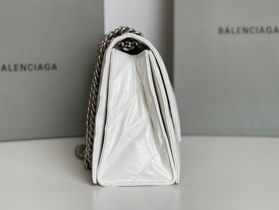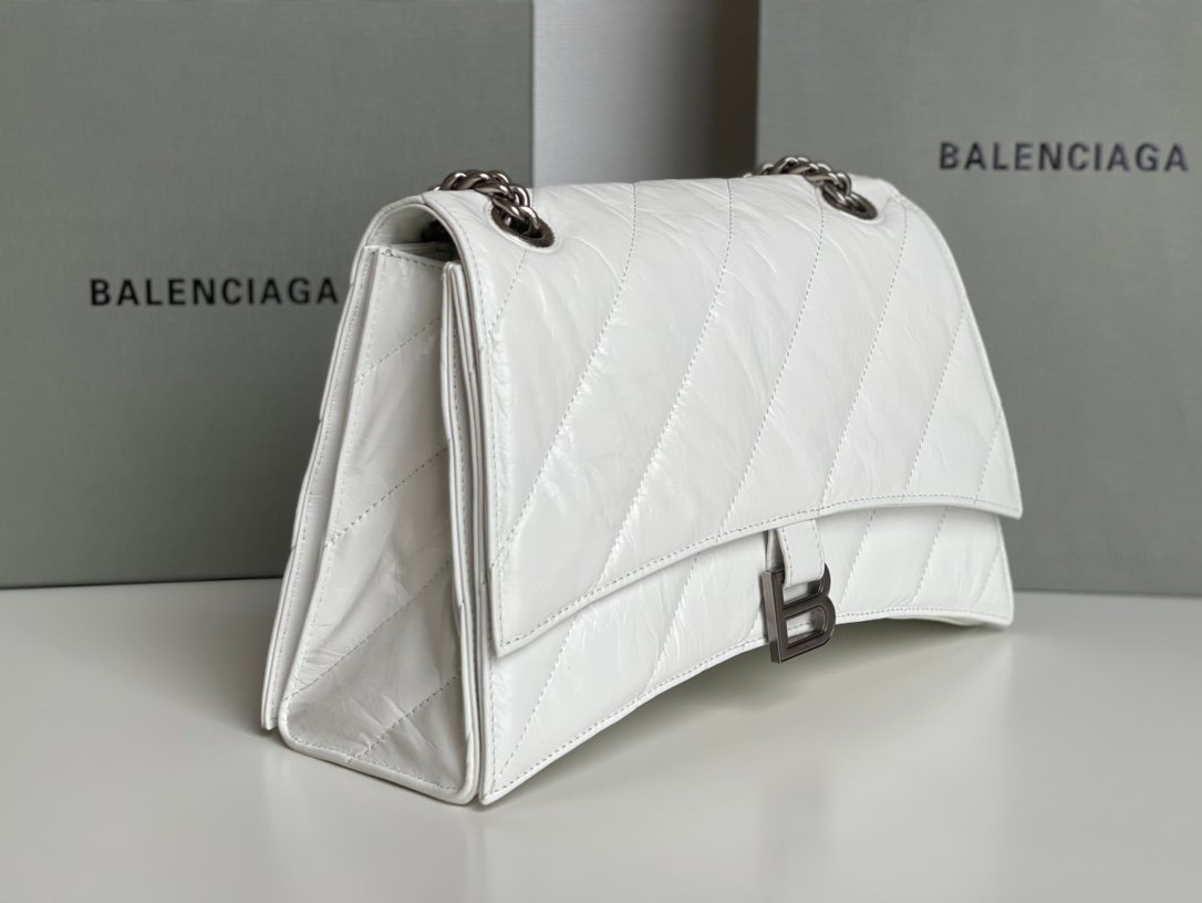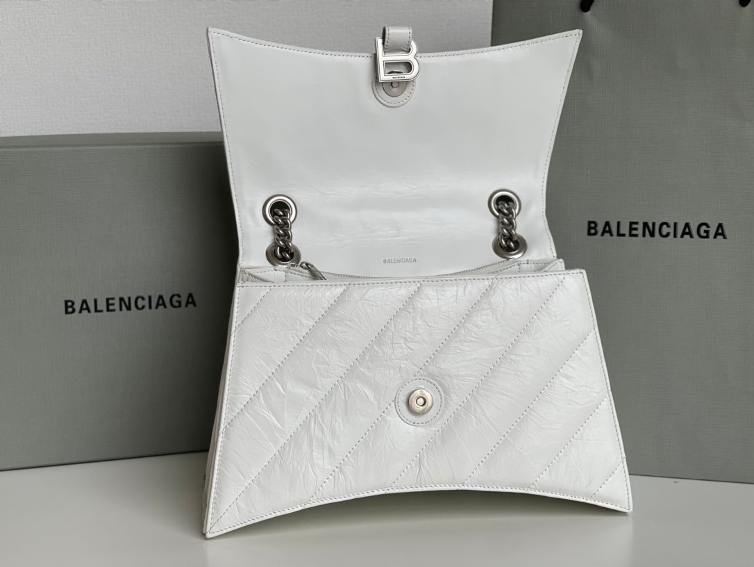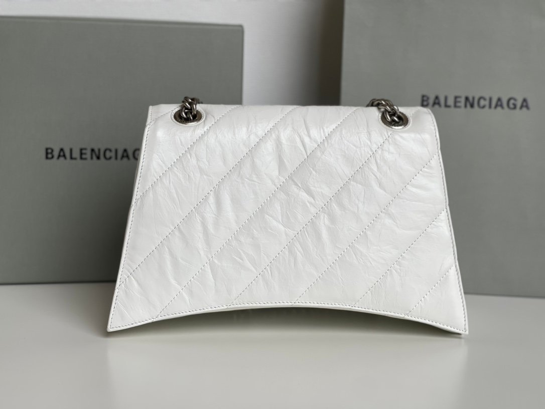 Home BAGS BALENCIAGA [Medium Oil Wax White]n๐๐š๐ฅ๐ž๐ง๐œ๐ข๐š๐  ๐š crush the most fragrant hourglass chain bag ๐Ÿ›nnFrom the Parisian house 22 years of fall and winter collection – Crush handbags aura of powerful practicality of the big bag strong return! nBreaking the traditional stiff bag type, the use of stitching soft calf leather material, with bold metal slip chain, shoulder strap can be switched at will shoulder crossbody back method, casual atmosphere style welcome lai๐Ÿ‰‘nModel No.: 152 embroidery line nMedium size: 31x20x bottom 12cm nSmall size: 25x15x bottom 9.5cm