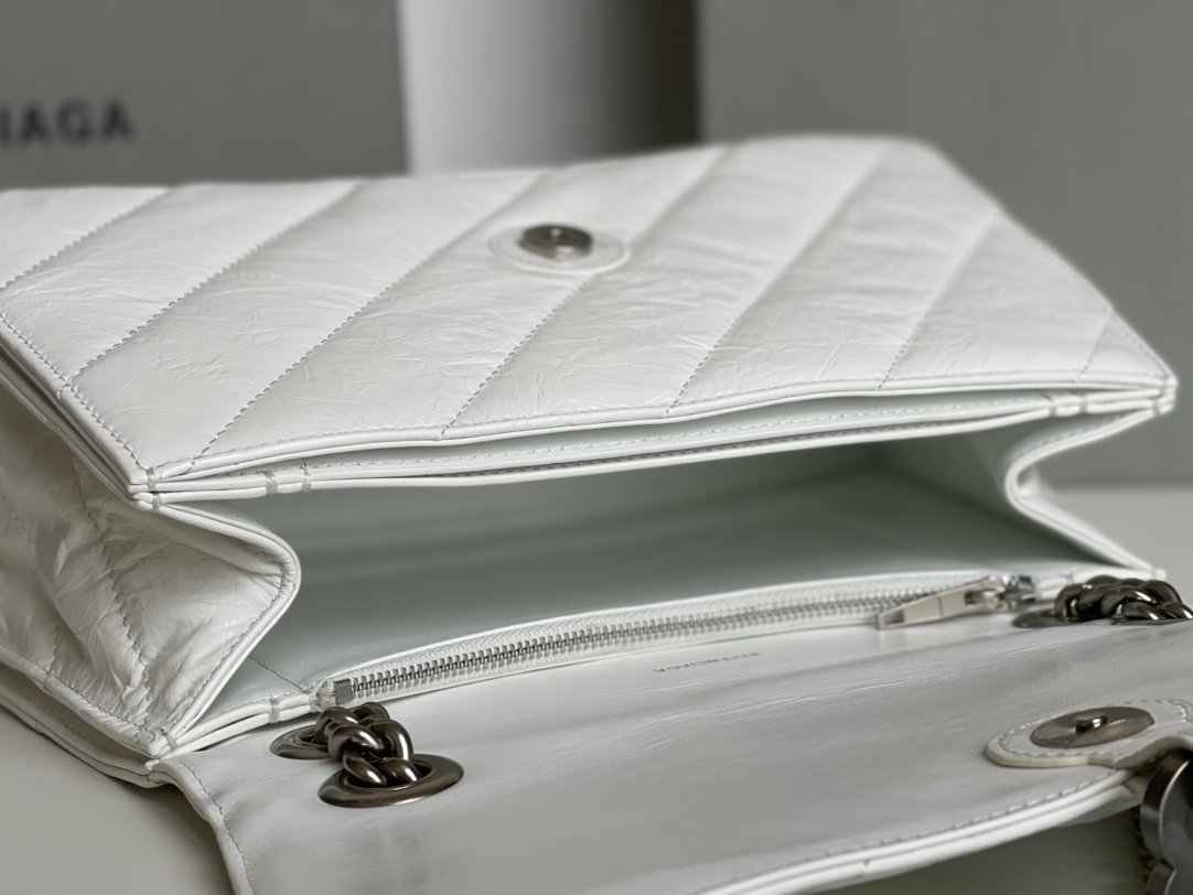 [Medium Oil Wax White]n๐๐š๐ฅ๐ž๐ง๐œ๐ข๐š๐  ๐š crush the most fragrant hourglass chain bag ๐Ÿ›nnFrom the Parisian house 22 years of fall and winter collection – Crush handbags aura of powerful practicality of the big bag strong return! nBreaking the traditional stiff bag type, the use of stitching soft calf leather material, with bold metal slip chain, shoulder strap can be switched at will shoulder crossbody back method, casual atmosphere style welcome lai๐Ÿ‰‘nModel No.: 152 embroidery line nMedium size: 31x20x bottom 12cm nSmall size: 25x15x bottom 9.5cm