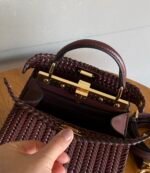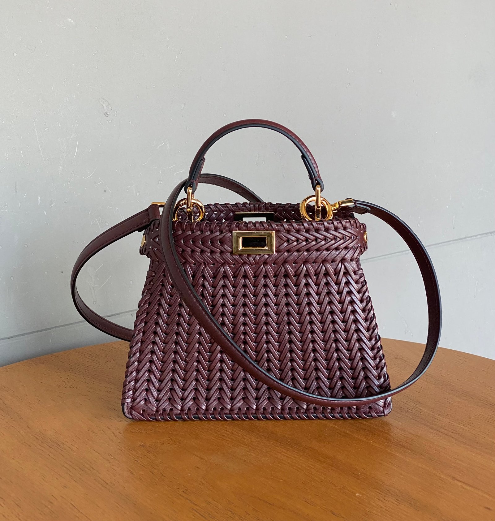 Home BAGS FENDI new peekaboo petite 🔥n woven handbag 👜 two different ways. nMini size small and exquisite Also too cute! nWoven sheepskin, exquisite hardware, organ version of the logo shape, before and after the two-layer design can also be loaded, cell phone 📱 cosmetics, super in line with the current trend of bags! Sisters rush n Model No. 88N335W1800n Size 20×15.5×11