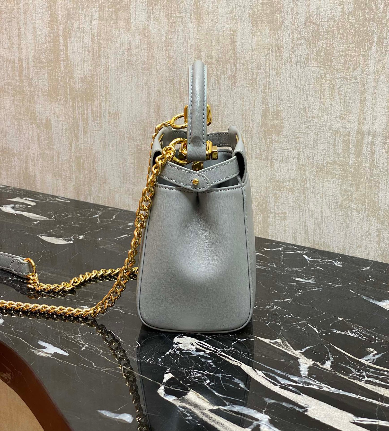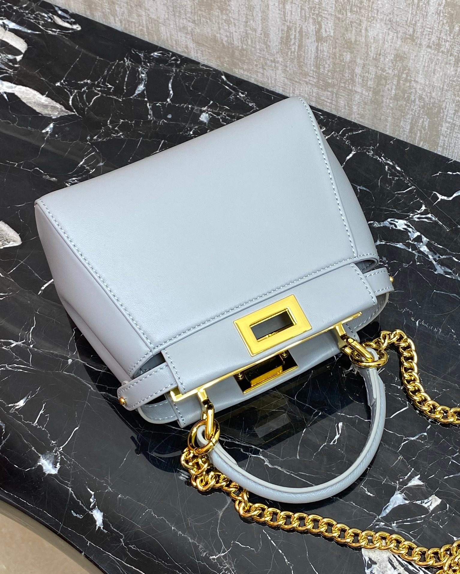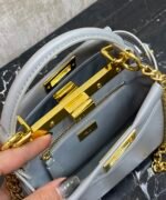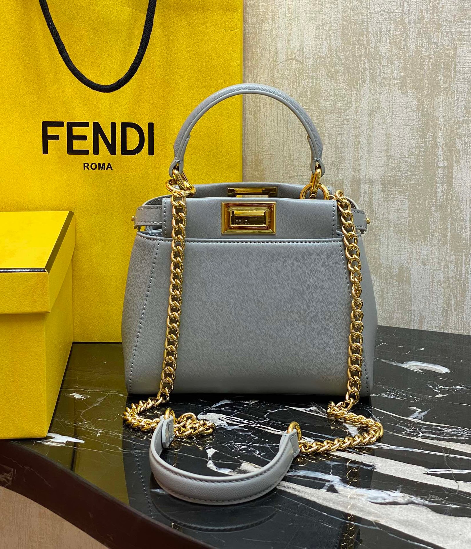 With a full set of counter packaging n light gray nPeekaboo Xs small handbag system, handbag, irreplaceable classic temperament, young fashion versatile, small bag with large capacity, star netroots with the same models, recommended, original price of 2W +, take inside and outside the washed lambskin, super fine and soft breathable and comfortable. There are each two compartments, the center is separated by a rigid plate. Twist lock on both sides. Single handle and lining. Adjustable and removable chain shoulder strap, can be carried over the shoulder or diagonally. Size 19*8.5*15.5cm ๐Ÿ๐Ÿ309 sheepskin