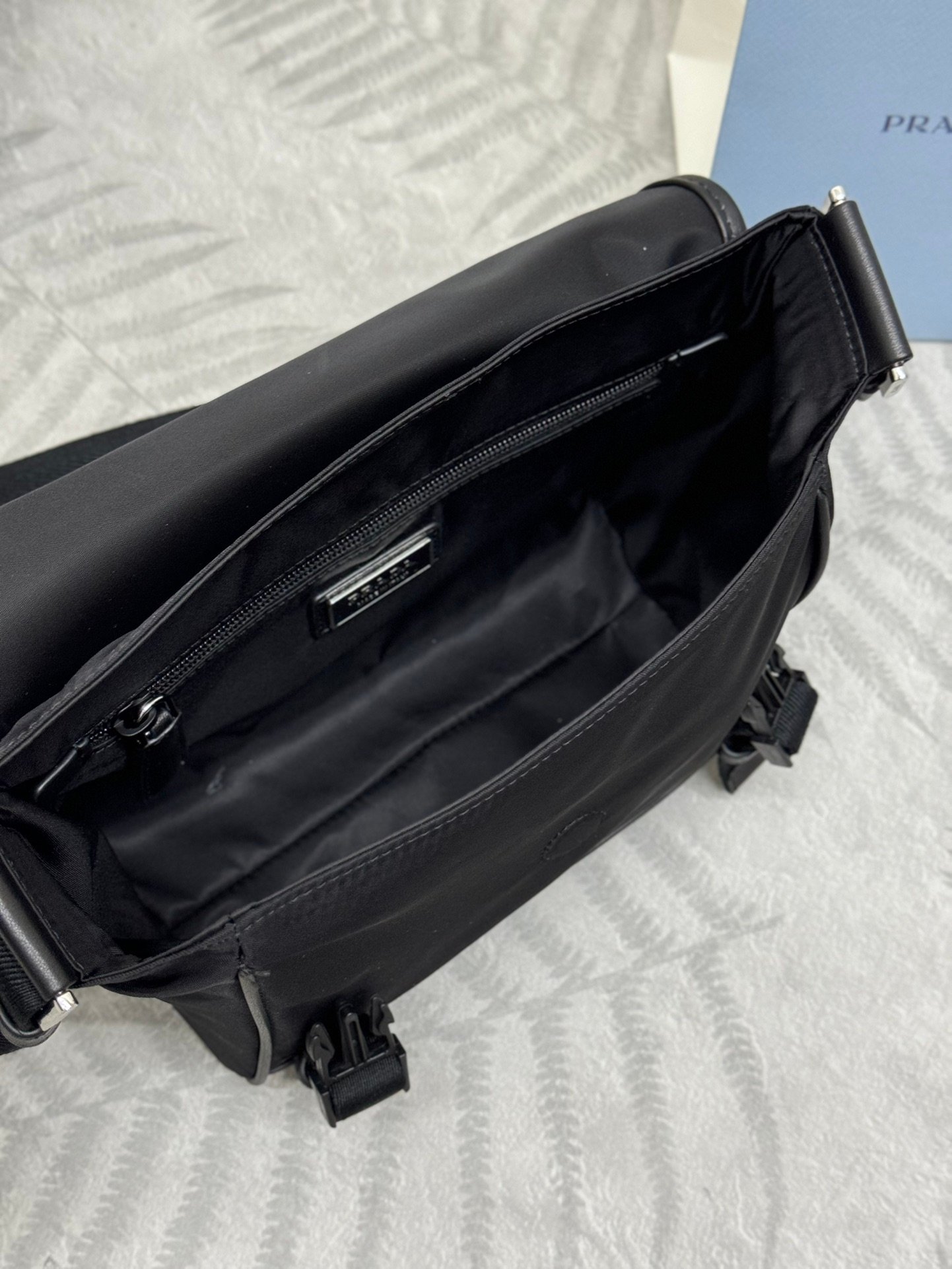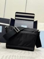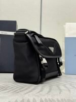 This new small messenger bag 2VD066 is designed by recycled nylon yarn Re-Nylon material, flap and snap closure, 2 exterior zippered pockets, interior zippered pocket and patch pocket. Adjustable woven trimmed shoulder strap, another classic pop-up one, hurry up and get your hands on it