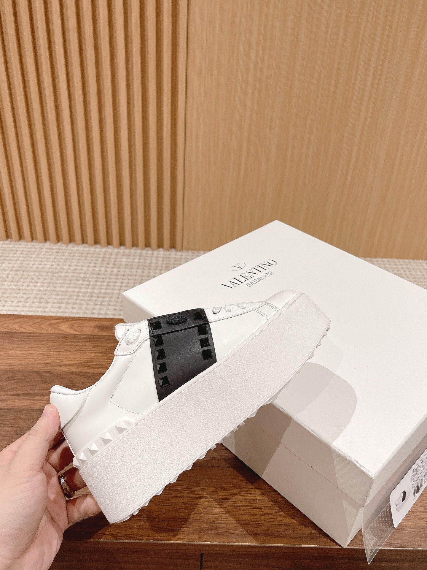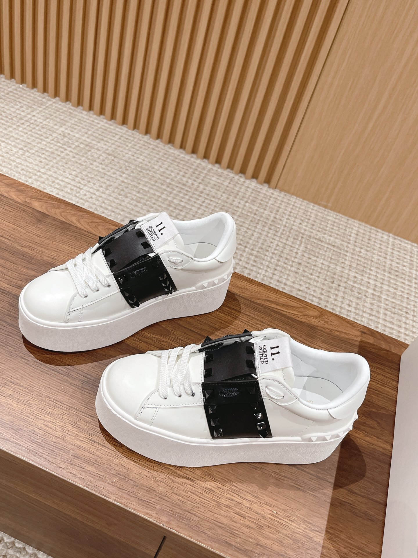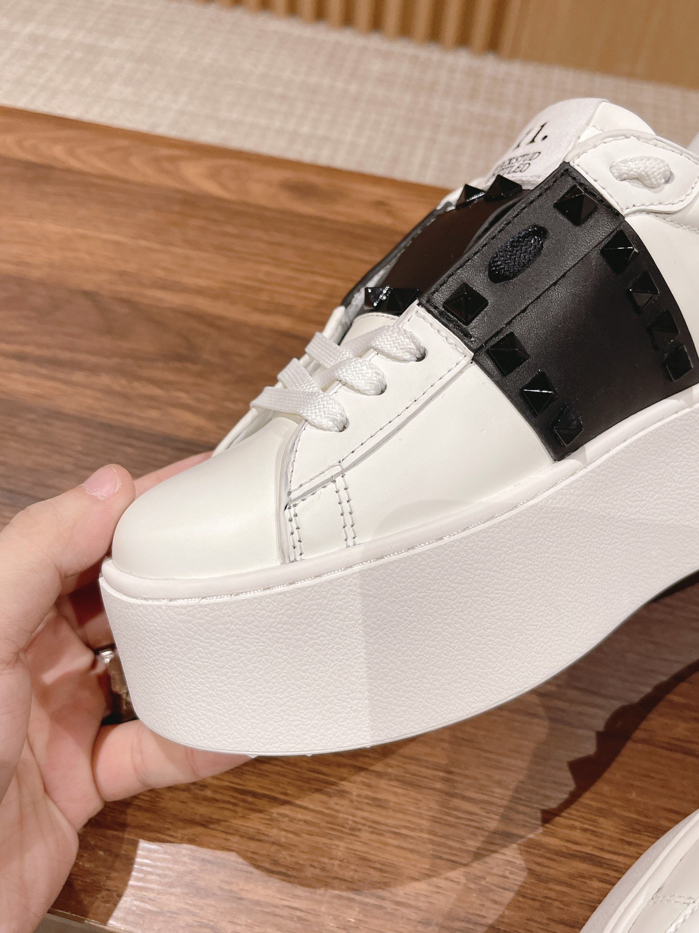 顶级 情侣款 Valentino nUntitled华伦天奴经典铆钉小白鞋 nn春夏最新款松糕厚底运动鞋nn原版定制小牛皮 牛皮里n独家开模大底 底厚57cm nnSizeM