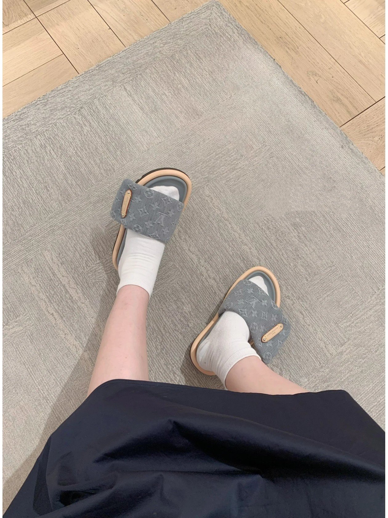 🌟 [Upgraded] 𝐋𝐨𝐮𝐢𝐬 𝐕𝐮𝐢𝐭 𝐭𝐨𝐧#Louis Vuitton Bread Slippers Another burst of models The latest emphasis on 100% real down filling nnLouis Vuitton one out of the peak of the super burst of models of the old flower slippers bread the feeling of soft feet soft and ultra-comfortable nnFire Little Red Book Advanced lazy style .... Summer without a pair of ugly slippers is no soul 🕸🕸🕸 Today to plant grass 23 spring rainbow 🌈 color is too suitable for this summer show high-level sense relief silk design full of fluffy effect is particularly good feeling whitening inexplicably fell in love. Sole immediately increased 3 centimeters, NICE 😘nn Velcro design wide can show the foot is very thin and good-looking summer favorite! nnThis design is so fashionable cool style can also match! nnSize:#35-44M $158.00