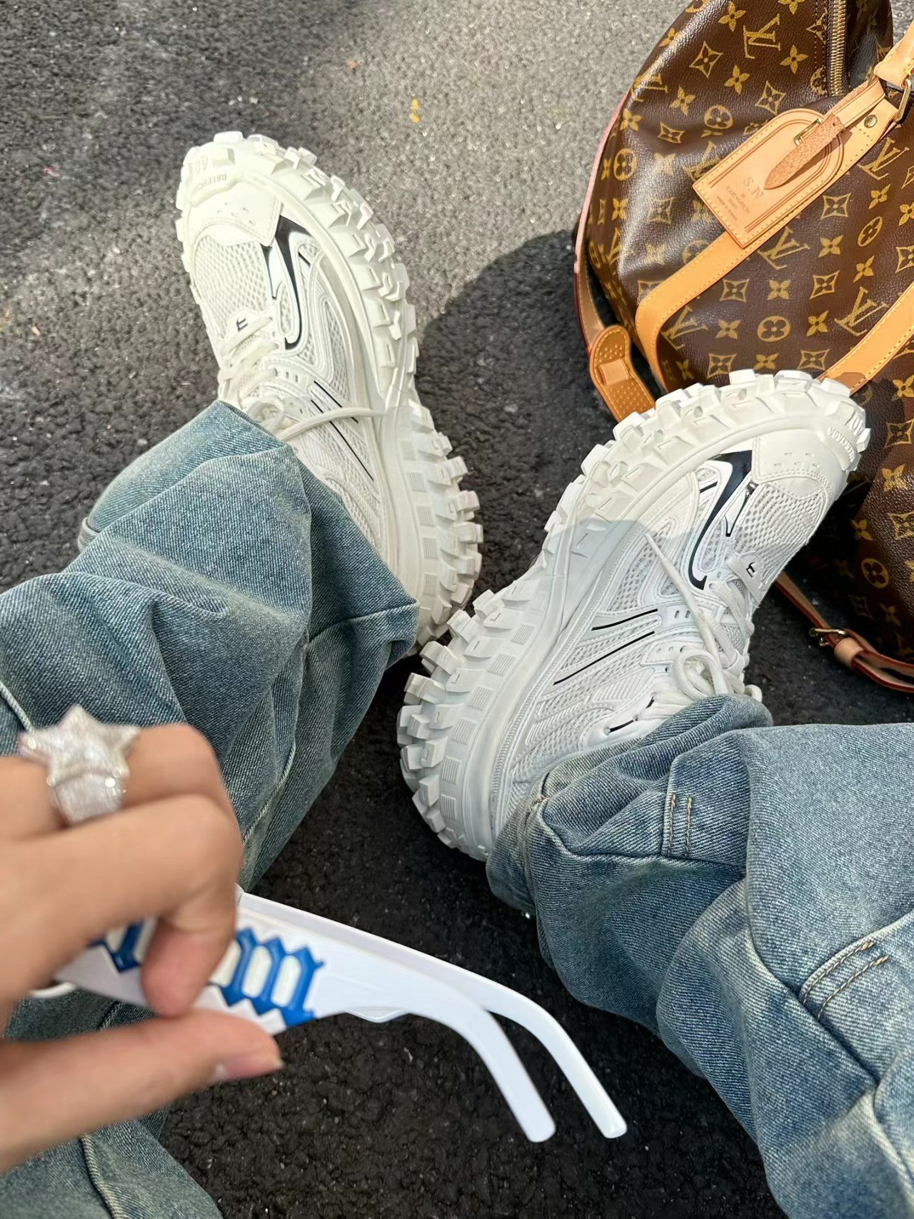 Super hot Paris family SUMMER 24 Cargo Sneaker Super big big big big daddy shoes known as “5XL” 6XL “Paris family Cargo Sneaker in the BALENCIAGA 2024 summer series of the show, we see the new sneakers Cargo Sneaker, the continuation of the classic design of 3XL, compared to the 3XL This is an extremely exaggerated shape more exaggerated, with a larger sole area and more upturned toe. Extremely exaggerated shape is even more exaggerated, with a larger sole area and more upturned toe, it is no wonder that it is called “5.6XL” appearance design in addition to the “bigger than big”, the old thick mesh upper, the iconic Sporty B Logo placed in the middle of the upper, coupled with a markedly increased thickness of the midsole, but also has a unique style Upper material is still normal leather + mesh all pairs of the original materials Couple sizes: 35-46.