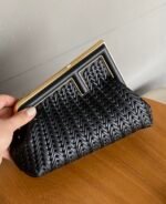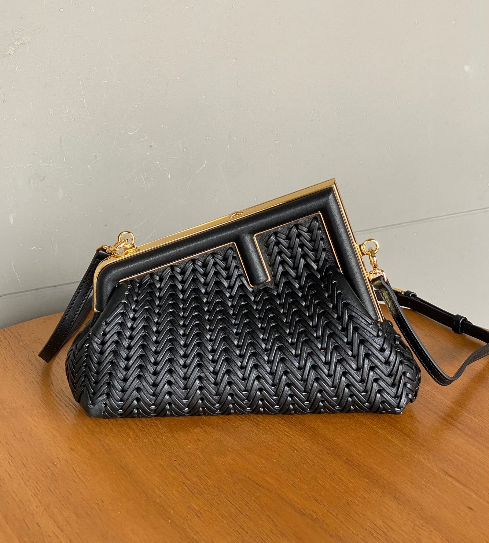 FENDI First woven cloud bag, tilted letter F into a soft handbag frame, handbag design is unique and subtle, the material includes soft sheepskin weaving, small 26cm. each handbag is equipped with a removable adjustable shoulder strap, can be cross-body, in addition to the good looks of the bag, there is a lot of space, very practical, this year, will be a red bag